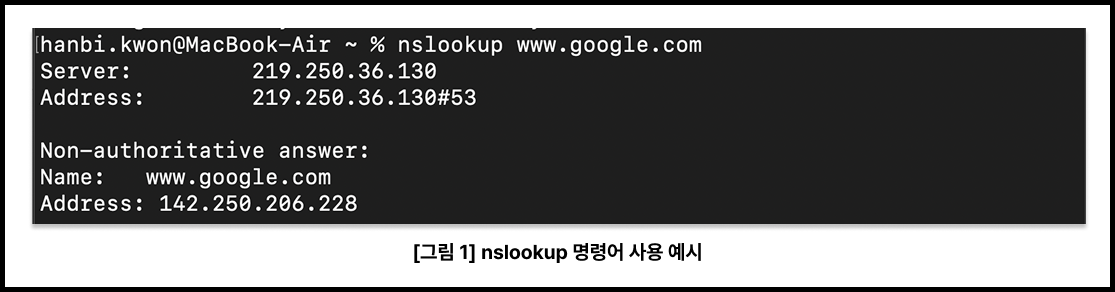 - DNS 조회 – 도메인 이름을 IP 주소로 변환